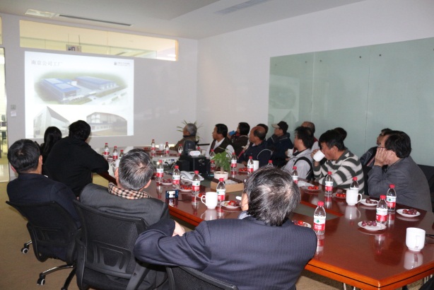2013年11月16日上午,吴清绿董事长及台湾蔬果同业公会代表共21人前往士兴集团南京总管理处参观指导。各位代表听取了黄毓鹏董事长的士兴集团介绍,萧铭华总经理的士兴集团经营发展状况简报,并兴致勃勃地参观了总管理处的钢构加工厂和彩板加工厂。各位代表对士兴集团已经取得的成就表示祝贺,并对士兴集团美好明天寄予殷切希望。本次各位代表的士兴之行取得圆满成功。